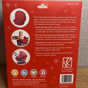 The J.L. Childress 4-in-1 Multi-Use Cover is soft, stretchy and wonderfully versatile. The limited-time holiday patterns make great gifts and a fun way to celebrate the season with baby! Use as an infant car seat cover, nursing and pumping cover, shopping cart cover, high chair cover and baby blanket. Breathable, stretchy fabric allows the cover to fit all infant car seats. Peek in at baby through the peek-a-boo hole at the top! When breastfeeding or pumping, the cover provides complete, full-coverage of your front and back. As a shopping cart and high chair cover, your little one will be protected from icky dirt and germs and the cover works easily with safety straps. Finally, the soft fabric is a cuddly and warm option for a blanket.