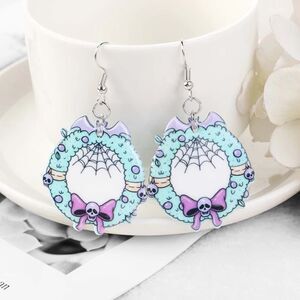 New Christmas Holiday Goth Bat Skull Spiderweb Wreath Drop Earrings Pastel Gift