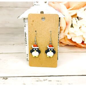 New Christmas Penguins w/Santa Hat Earrings Resin 3-D Xmas, Fun, Jewelry