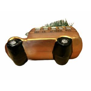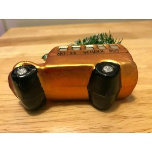 New Christmas Tree Glass Painted Ornament Holiday Glass Yellow School Bus w Tree on Top
