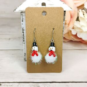 New Christmas/Holiday Fuzzy Snowman Earrings 3-D Fun Xmas Jewelry