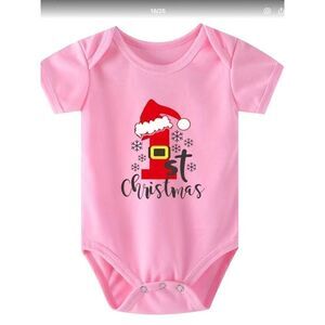 New, adorable one piece , 1st Christmas, pink with red and black, graphics, see measurements for custom fit.