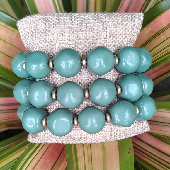New! Chunky Beaded Stretch Bracelet Set (3) – Green Statement Jewelry