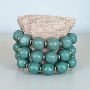 chunky bracelet, stretch bracelet, beaded jewelry, green bracelet, statement piece, bracelet set, stackable bracelets, fashion accessories, holiday gift, birthday gift, boho chic, retro style, casual look, bold jewelry, trendy bracelets.