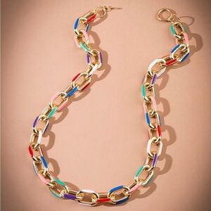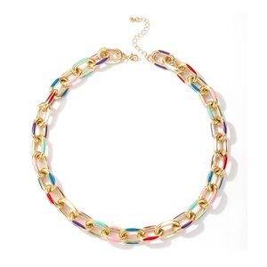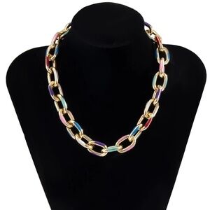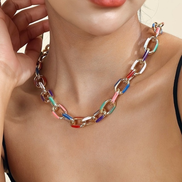 Gold Chunky Chain Color Block Bling Trendy Choker Thick Links Multi Color Womens Gift Birthday Everyday Office Casual Beach Boho Swim Resort Vacation Summer Spring 14K 16K 18K Diamond Jewels Stones Shine
