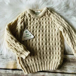 Brand new with tags! Pure New Wool. Color Ivory. Made In Ireland. Size approximate 4. Please check measurements for the size fit. Chest 12”, Length 15”, Sleeve 11”.