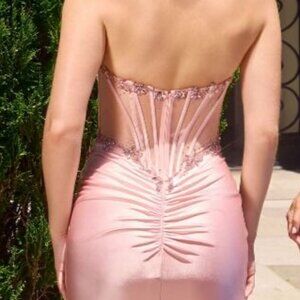New Cielo Blue Beaded Graduation Long Satin Dress w/ Corset Bodice CD C169