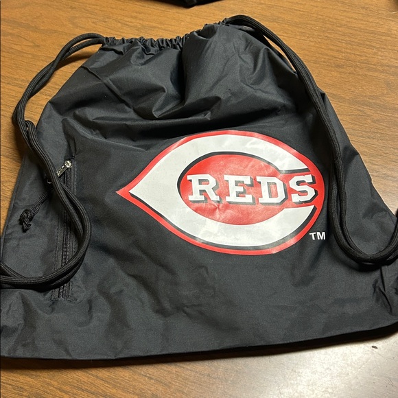 New, Cincinnati Reds drawstring backpack Never used! Large compartment and front zipper area for small items. 17” x 18”
