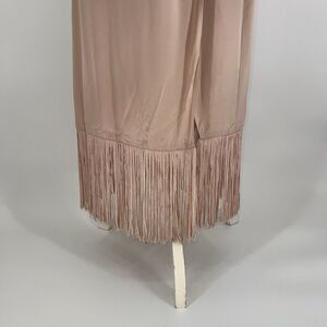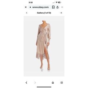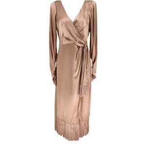New Cinq A Sept Page Silk Fringe Trim Wrap Dress Pink Sand Midi Size 8 Cocktail
