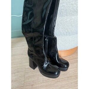 New Circus NY Women's Sandy Knee High Boot Black Patient shiny tall boots 5.5