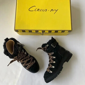 New Circus by Sam Edelman Gretchen Shearling Hiker Boot 6M Black lace up Sherpa