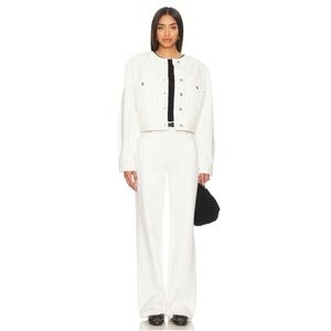 New Citizens of Humanity Renata Denim Jacket Cropped Jean Collarless White Pashmina