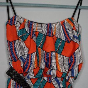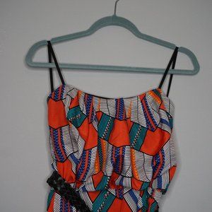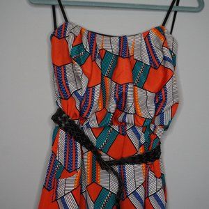 City Triangles Red Geometric Strapless Belted Dress with Pockets size M New w/out Tags. The tags were removed but the dress was never worn. Pockets in the front of dress. Material: Self and Lining are both 100% Polyester. Comes from air conditioned smoke free home.