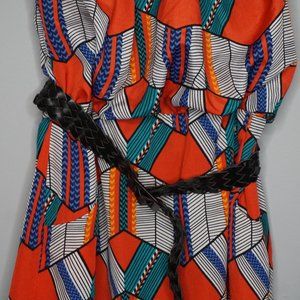 New City Triangles Red Geometric Strapless Belted Dress with Pockets size M
