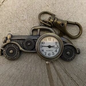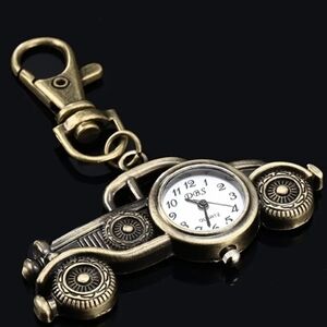 Classic Car Key Chain Watch Creative Bronze Keychain Novelty Quartz Watch Pocket Watch Pendant Bag Accessories