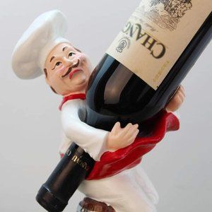 You will love the old-world style, the color and detail of this beautifully sculpted Chef Sitting on wine barrel, wine holder. Exquisitely made of hand-painted polyresin that brings this humorously plump character to life with every minuscule detail. Color/pattern: White Materials: Polyresin Set includes: One (1) wine holder Dimensions: 9.5 inches high x 8 inches wide x 5 inches deep