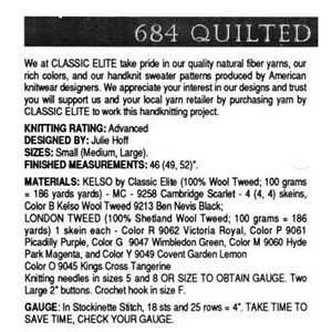 New Classic Elite Yarns 684 Quilted Americana Cardigan Sweater Knitting Pattern