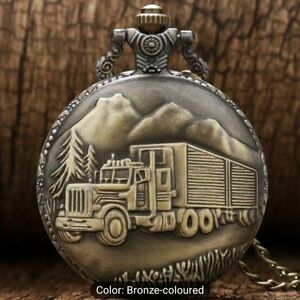Classical Freight Truck Big Rig Pocket Watch Retro Forest Truck Quartz Hanging Watch Necklace.