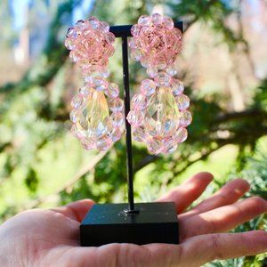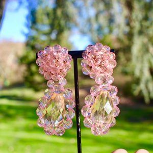 New Transparent Fresh Light Pink Crystal Beaded Flower Drop Dangling Earrings