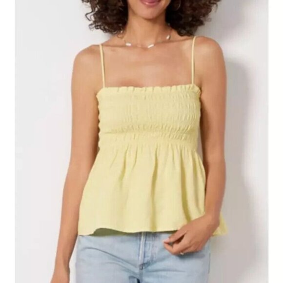 New Cloth & Stone Smocked Linen Blend Squareneck Peplum Tank Top Yellow Sz M