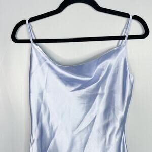 New Cloud Ten Small S Blue Alaleh Satin Cowl Neck Mini Slip Dress Wrap Detail