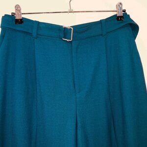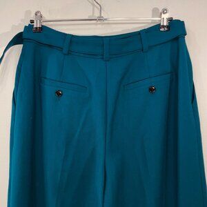 New Club Monaco Heemi Wool Blend Belted Trousers Dark Teal 8 $190