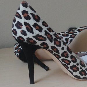 Aren't these just lovely! Brand New, never worn. Classy Italian leopard-print calf hair heels. In excellent condition. Almond shape toe. Contrast toe and back heel in black Italian suede. Fully leather lined. 3 1/2" heel. Made in Italy. European size 38.5, which is American size 8.5.