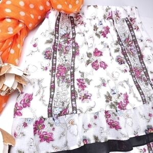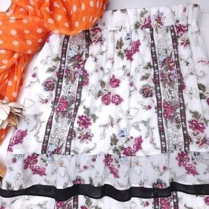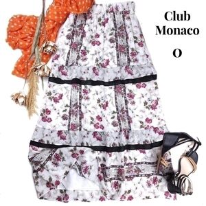 Club Monaco White Pink Floral Layered Maxi Skirt Sz 0