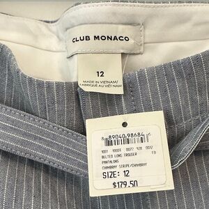 New! Club Monaco Women's Linen Menswear Inspired Gray Striped Pants Size 12