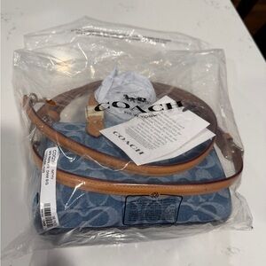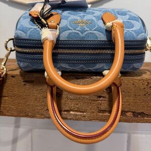 New with tags Coach signature denim mini rowan! Comes with detachable strap!