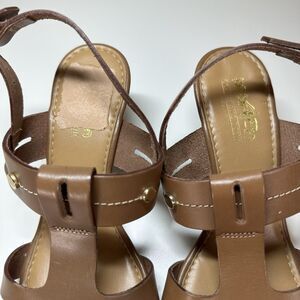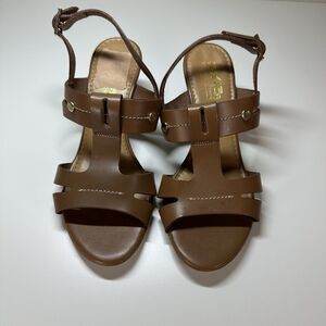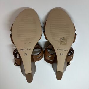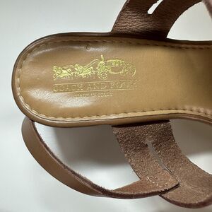 New Coach And Four Prato Tan Leather Wedge Sandals Made Italy Size 6.5 **READ**