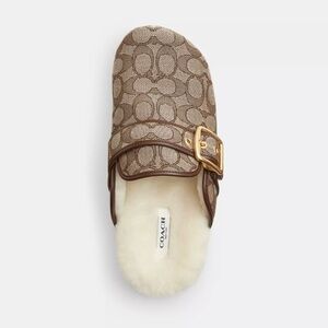 Signature jacquard and man-made leather upper Faux shearling lining and footbed Rubber outsole Slip on This Coach piece is crafted with our Signature jacquard made from a blend of regenerative cotton and recycled polyester