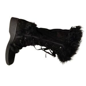 New Coach Audi tall black leather fur winter snow boots apres shoe size 9.5