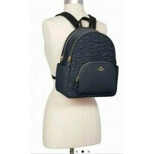 New Coach C4094 Court Backpack with Ruching Nylon and Pebble Leather Midnight