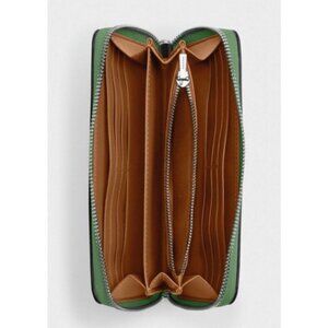 New Coach C4451 Long Zip Around Pebble Leather Wallet Soft Green