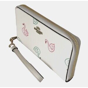 New Coach C8384 Long Zip Around Wallet with Swan Print Chalk Multi