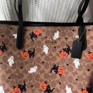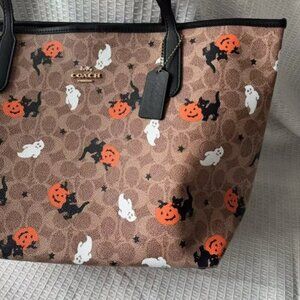 New Coach City Tote In Signature Canvas With Halloween Print CW450
