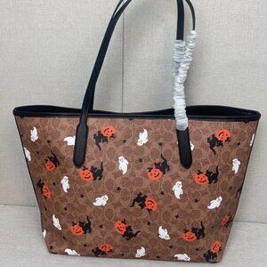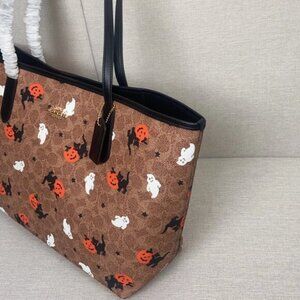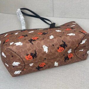 New Coach City Tote In Signature Canvas With Halloween Print CW450