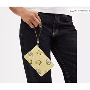 New Coach Corner Zip Wristlet Yellow Lemon Print Canvas CBB80