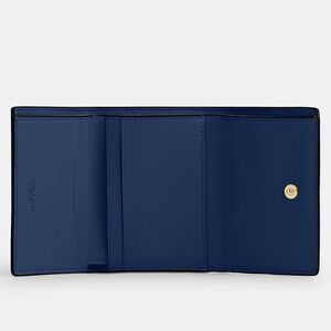 New Coach Detachable Card Case Wallet Tan Signature Canvas Blue Pebbled Leather