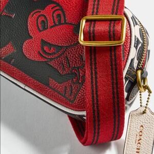 New Coach Disney Mickey Mouse Camera Crossbody/Pebble Leather/ Red-White