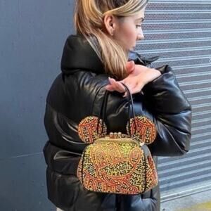 New Coach Disney Mickey Mouse Kisslock Bag/ Leather/Black-Yellow-Orang4