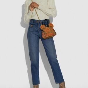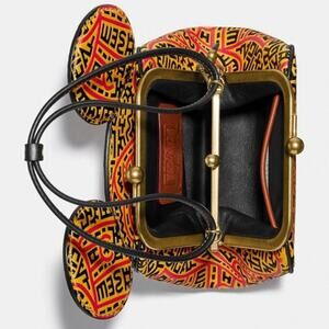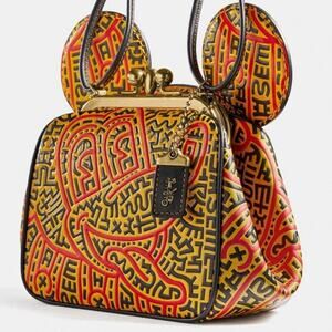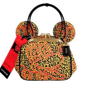New Coach Disney Mickey Mouse Kisslock Bag/ Leather/Black-Yellow-Orang4