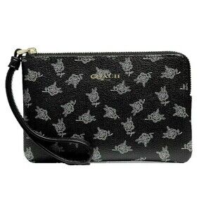 New Coach F39229 Corner Zip Wristlet Floral Print Black Multi