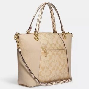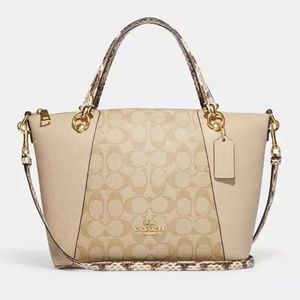 New Coach Kacey Satchel In Colorblock Signature Canvas Neutral Color Cream/Tan