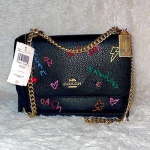 New Coach Klare Leather Crossbody Shoulder Bag Purse With Diary Embroidery Black