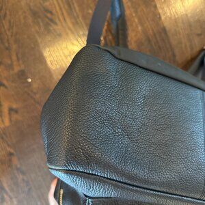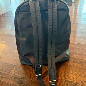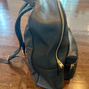 New, Coach, black leather backpack with gold hardware. Never used in perfect condition. ~15" tall by ~12" wide.