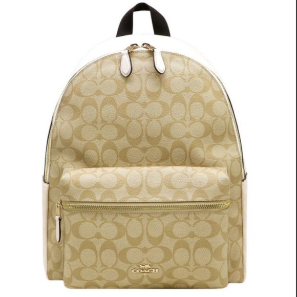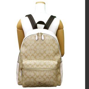 NWT $428 COACH CHARLIE/KHAKI SIGNATURE LEATHER LARGE BACKPACK BAG F58314. Condition is "New with tags".