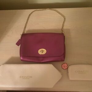New Coach Leather Violet Crossbody w/ 2 Straps & Coach 2 Cosmetic Bags Set
