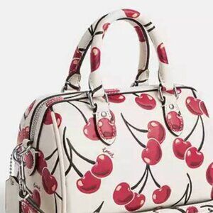 New Coach MINI White and Red Satchel/Crossbody Bag with Cherry Print